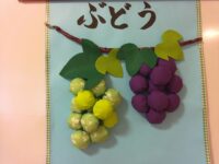 葡萄の作品は、ヨーヨーキルトに綿を入れて実を作りました。この方は若い頃、和裁・洋裁が得意で近所の人に頼まれるほどの腕だったとそうです。持って行くと「いいよ。いいよ」とコツコツと作品を作ってくださいました。まわりの方が「立派ね。いいのができたね。」と褒めてくださるのを恥ずかしそうにされていましたが、完成をとても喜ばれていました。